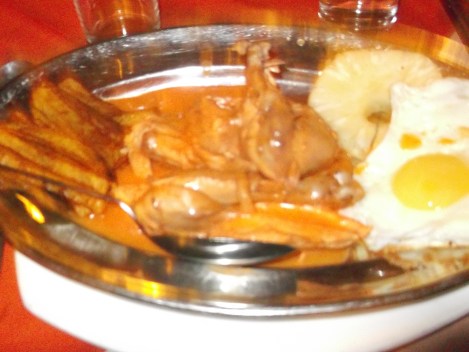 Abid, our favourite friendly tuktuk driver was waiting outside. His usual price, summarised by the Indian phrase ‘as you like’ along with his continually genial and slightly eccentric manner summarises his popularity! It’s funny how quickly luggage can accumulate, especially in a country where everything is so cheap. Es’s 80 litre rucksack (yes – I was very impressed by her lifting skills!) had expanded into another holdall and backpack and cloth bag to match… Abbid’s eyes as the tuktuk was loaded was therefore quite the sight! Having piled up the tuktuk and squeezed in, we then headed to Kalinga, a restaurant by the station connected to a local hotel. Walking into Kalinga felt like walking into an Indian restaurant in England. Stereotypical decor and full of little dining booths. Having dragged Es’s entire Indian life from the autorickshaw in we quickly ordered the thing we were craving most – meat! In a response to my diet consisting only of rice, roti and curry for the last month I went for chicken, egg, pineapple and chips. It was yum – even if I did feel more than a bit dodgey afterwards!! We also had a bit of a run in when we suspected the chocolate sauce on our ice cream had brandy in it, causing quite the furore as the waiters tasted it themselves and realised that something wasn’t quite right! The fact that we had chicken however seemed to make everything okay.