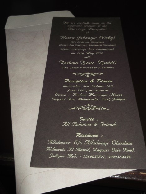In other news, I have my first Jodhpur wedding reception invitation! Our favourite omelette salesman (Vicky) has decided he wants us to come to his wedding party on the 31st of October, which should be wonderful. A nice excuse to go and buy some Indian clothes and eat lots of sumptuous food if nothing else!