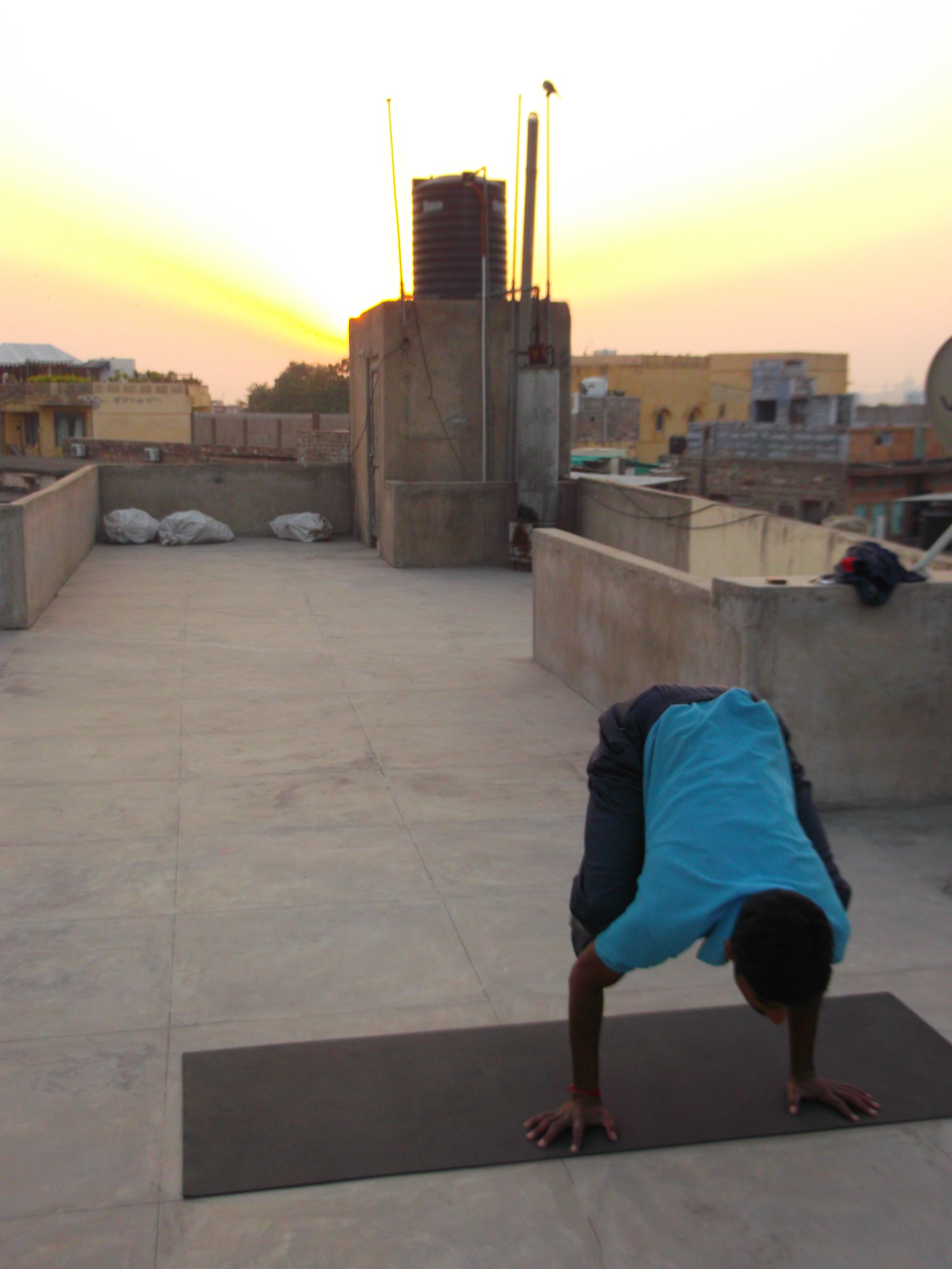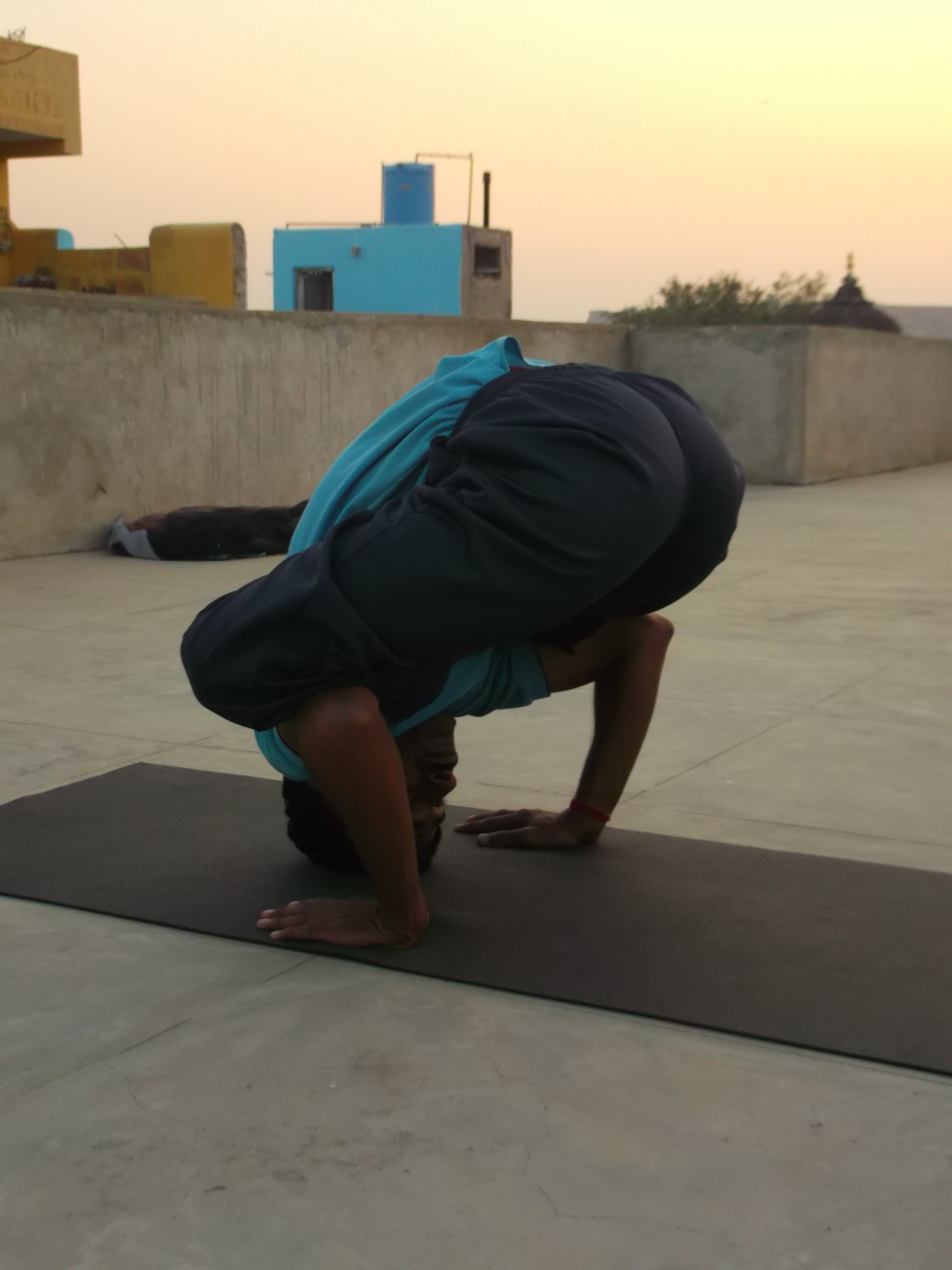 The mornings are actually starting to quite chilly now, with Bharat apparently being amazed I don’t want to wear a jumper. I sense his amazement could actually lead me in future to not wear a jumper even if I wanted to, in a kind of English northerner defiant “Ha, call this cold? I’ll show you cold” kinda way. The sunrises only seem to be getting prettier as a result. To be honest, I really struggled initially this morning – I must have yawned about 4 times during the warmup – but once you realise you can do soemthing you couldn’t yesterday you suddenly perk up. This morning I managed to do the lotus without any pain at all! Minor victory for Liv over otherwise cranky body and another amateur yoga tickbox filled. Usually my heels dig into my legs, or my hips protest in that shooting manner than only bones and muscle can, but today I had neither- hurrah! My legs still don’t sit perfectly on the ground but I’m getting there, one crazy position at a time. The Butterfly position (imagine like you were about to sit crosslegged but then let the soles of your feet touch one another, and then flap them up and down like wings) has told me that one leg is distinctly more flexible than the other, but I’m working on it. We also did some breathing exercises this morning which were Ha-aaaard. Breathing in for one position and holding, breathing out for the next and holding. The breathing in wasn’t really difficult at all, we can all hold our breath right? But exhaling, and trying to then force your body to hold it whilst stretching as far as you physically can bordered on excruciating at points.