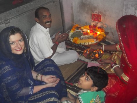 So let me tell you all about my wonderful Diwali. Will and I were especially blessed to be invited to three different celebrations, which was so heartwarming. Diwali, festival of lights, is the traditional Hindu festival welcoming home of Rama with candles and lights after 14 years of exile. When Diwali first began in Jodhpur, I have to admit, I wasn’t sure whether to be enthused or not. My already dubious air-conditioning was unplugged in favour of the fairy lights for outside, a main part of the celebration seemed to be setting off firecrackers at all hours of the day and night outside my window– giving Jodhpur a distinctly civil war feel – and it was not uncommon to see a rocket go up only to swerve accidentally and land in a cluster of houses. Fun, definitely. Safe? English health and safety institutions would positively faint. Surely however, this only makes it more fun. The risk of imminent maiming and death means you HAVE to enjoy every moment, right? Plus, you can’t survive Diwali without having a sense of humour. Happiness all round!