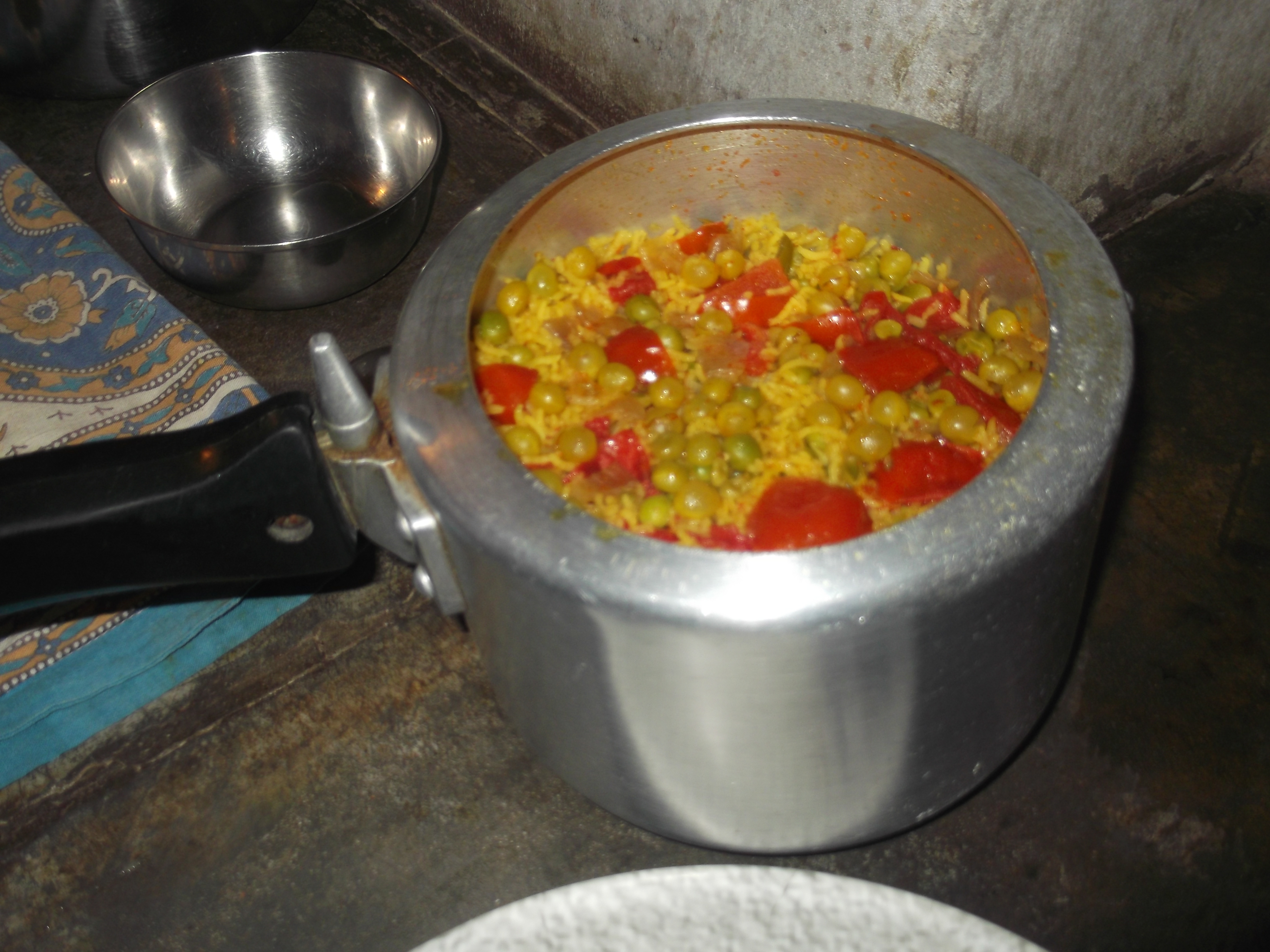 A favourite staple in the Achal Niwas household and a dish with unlimited options when it comes to variations… here’s the recipe for Indian Veggie Rice by Manju! Once again, everything is ‘as you like‘ so its a bit of a vegetable free-for-all! Don’t let the word vegetable convince you somehow this is healthy however, I’m pretty sure it’s not… but on the plus side its yummy and you can swap soyabean oil for 1 calorie spray and the carb heavy mixture of potatoes with rice for chicken/seafood or quorn in rice to make it health-conscious after all. That is, only if you’re really that worried (but you’re not worried really are you?)… win win!