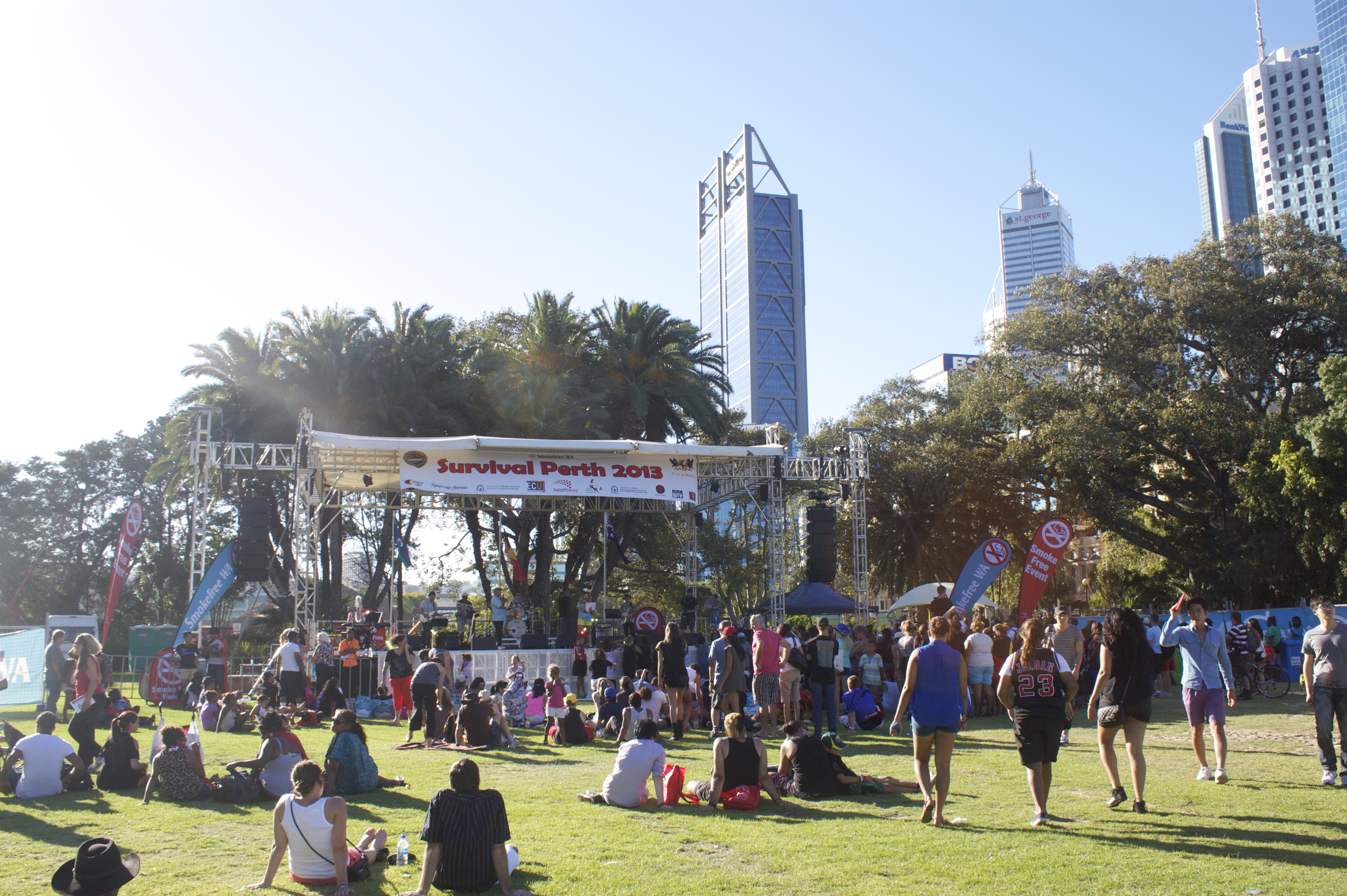 The celebrations themselves were really well organised and kudos to Perth for putting on so much to do. There was paintballing, camel rides, a free circus, a waterpark, airshows, lightshows, amusements, facepainting and so, so much more. One part I actually really enjoyed from both a fun and culturally informative perspective was the ‘Survival Day Perth’ area of the Park. I don’t pretend to be an expert in Australian political history but even before arriving in Oz I was aware of how understandably controversial Australia day can be for large sections of the Aboriginal community, with it having been dubbed as ‘Invasion Day’ in previous years. Now many prefer to call it ‘Survival Day’ and celebrate the literal survival of Australia’s original inhabitants and their culture. It was awesome with acts on all day and a real sense of community atmosphere, certainly not limited to just the aboriginal community either. We got a free Aussie rules football too, which always helps!