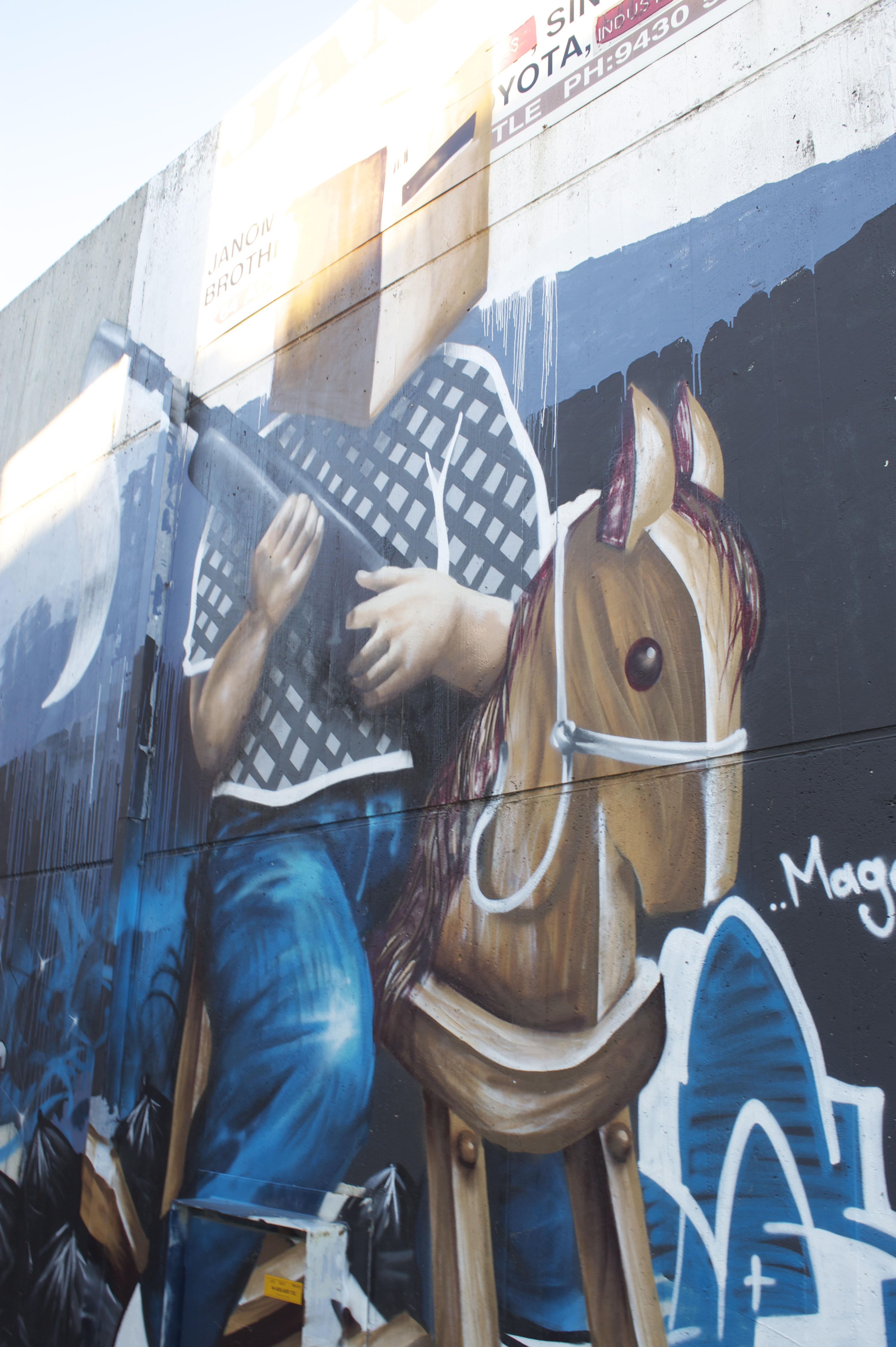 One thing I have noticed out and about in Fremantle is a predominant graffiti culture. It’s not really mentioned in any guidebooks but round every corner or down every dingey alleyway is an artwork waiting to be uncovered. I know graffiti can often be divisive, but I personally love it, especially when its done well. I’m not a fan of tagging – where’s the talent in writing your name on a wall? But lots of the graffiti in Freo is intelligent, can be tinged with a bit of a political message or is just really aesthetically pleasing. I at least am of the opinion that they are art and not vandalism, as long as its designated (the owner of the building is ok with it), its not offensive and it clearly has had some thought gone into it. A guided tour of my faves below… hopefully you like them as much as I do!