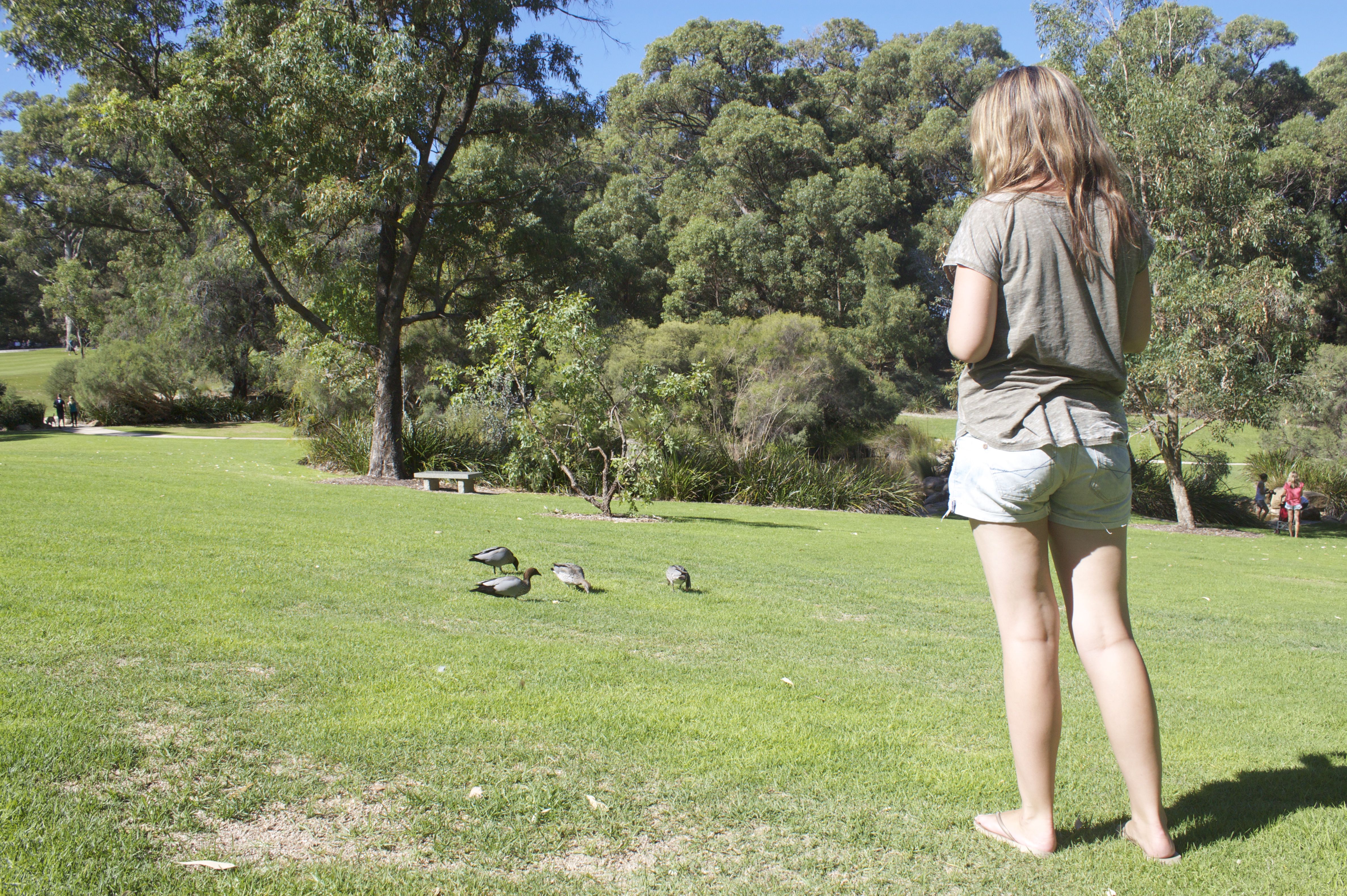 On Sunday, despite enjoying listening to the free musical extravaganza going on in our backyard, the sound of all the fun the actual attendees were having convinced us we had to go and do something with ourselves and the day. I’d been wanting to go back to Kings Park for a while now and the lovely sunny weather offered the perfect opportunity for a picnic. During the day the bridge walkways over the treetops are open too along with lots of Aussie Bush trails to explore. I even fed some Aussie ducks in the botanical gardens! Pics below…**